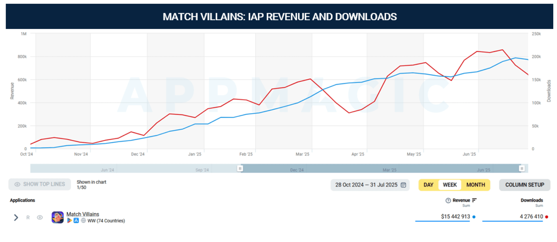 With its focus on casual puzzle mechanics and scalable monetization, Match Villains continues to benefit from the Match-3 genre’s proven metrics — including high ARPU potential, efficient payback periods, and predictable performance curves. The deal also reflects broader market dynamics highlighted in our recent feature, The Great Mobile Reversal — where M&A activity continues to concentrate around mobile studios demonstrating operational maturity and reliable monetization models.