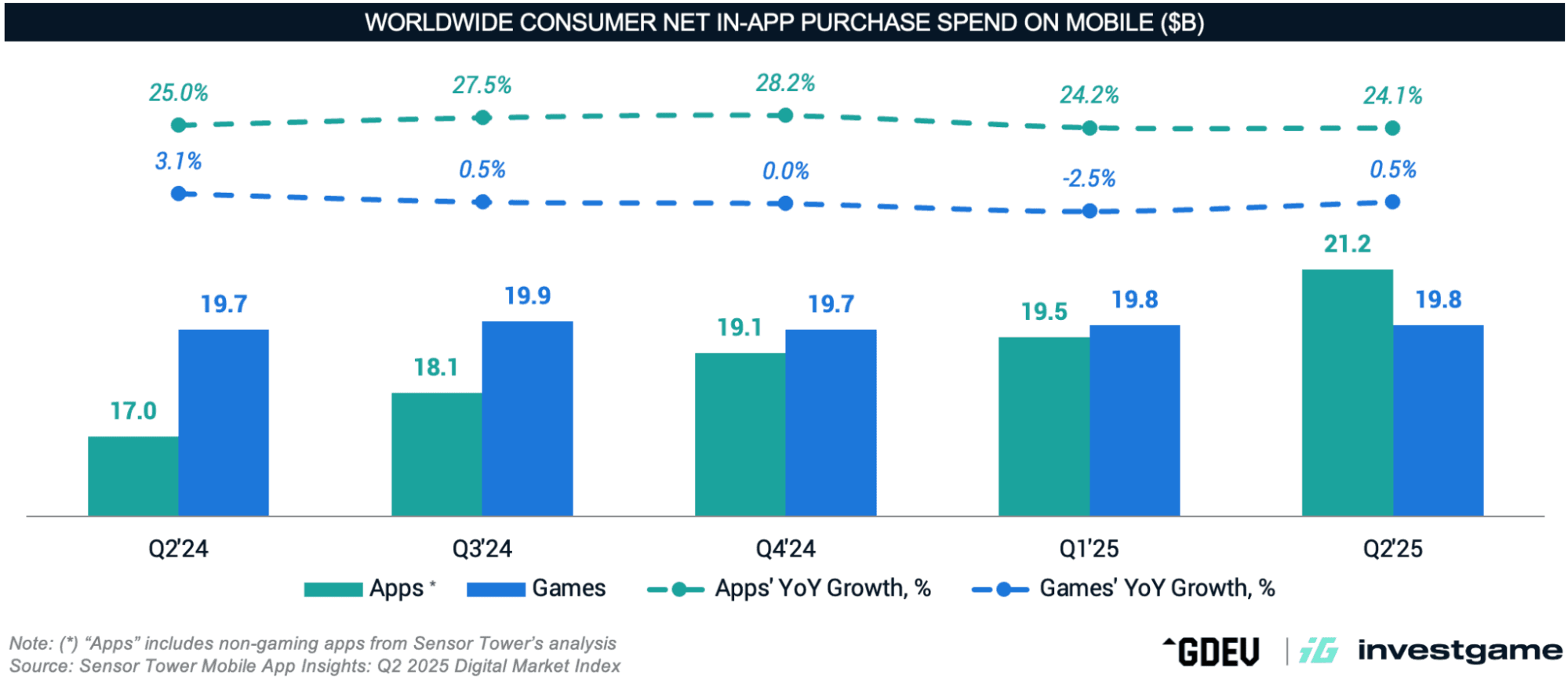 - Capital Realignment: $20.7B in transactions across 208 gamified consumer-app investments and exits since 2020—as mobile gaming IAPs stagnate, non-gaming consumer apps surged +24% YoY to $41B, proving gamification now drives mainstream consumer growth.
