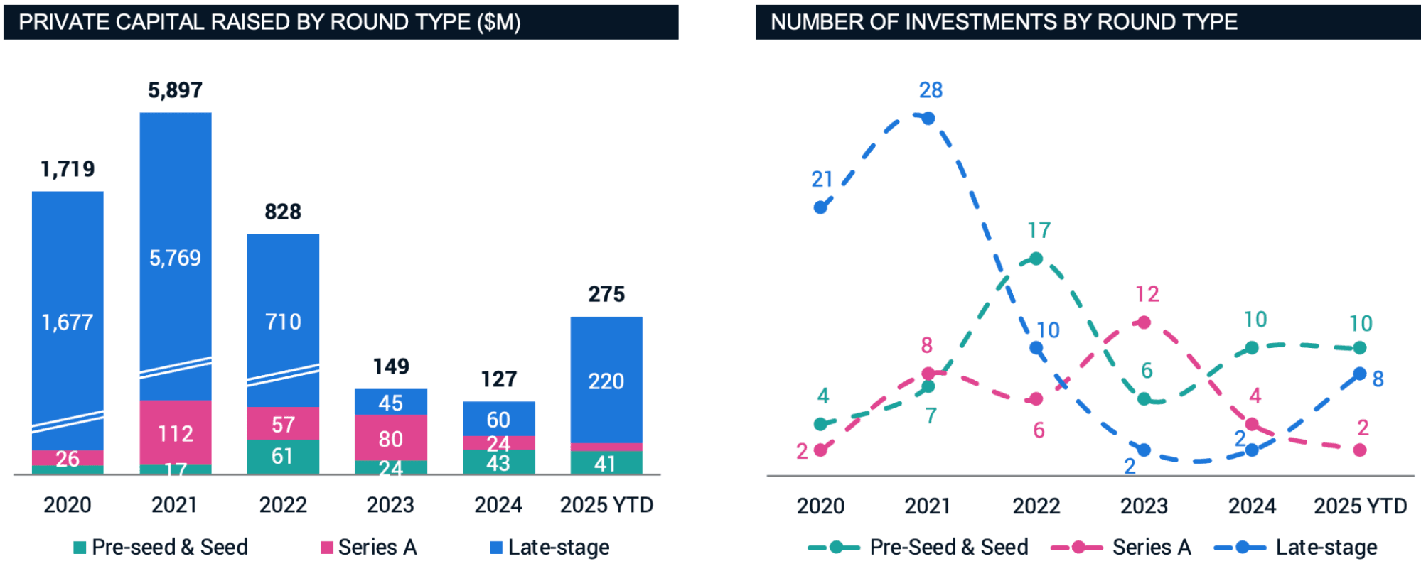 Overall, our analysis encompasses $9B capital raised in private investments across 159 deals with $11.7B proceeds generated in exits (M&A/IPO) across 49 transactions.