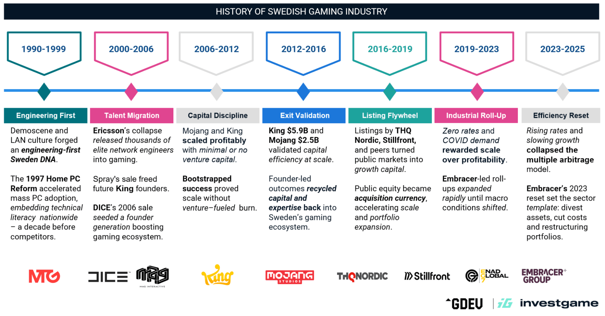 The reset clarified what Sweden’s gaming ecosystem actually is: not a venture market, not a roll-up machine, but a talent cluster that compounds through engineering culture and design discipline. Capital models will continue to evolve. The creative core has proven more durable than any of them.